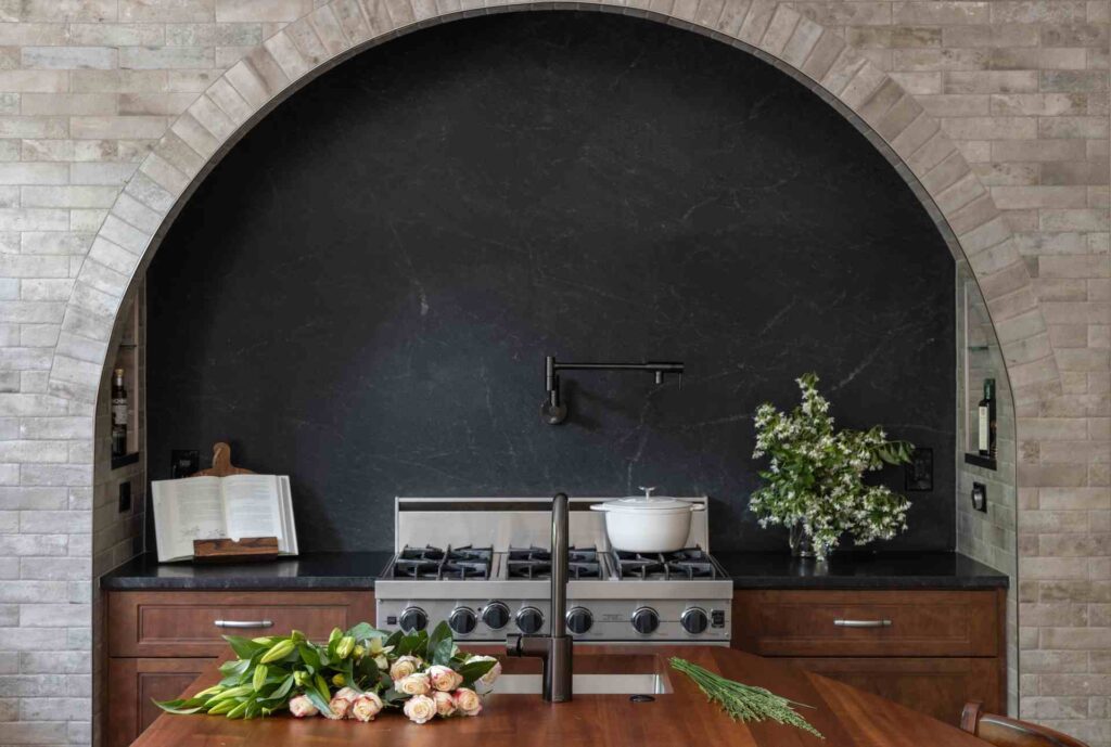 Premium details—like Moen’s Align pull-down faucet, a Delta wall-mounted pot filler, and Karndean Mountain Slate luxury vinyl tile—enhance both beauty and usability. High-end appliances, including a Sub-Zero 48” PRO refrigerator, Bosch 800 Series dishwasher and speed oven, and XO beverage center, make this kitchen every home chef’s dream.