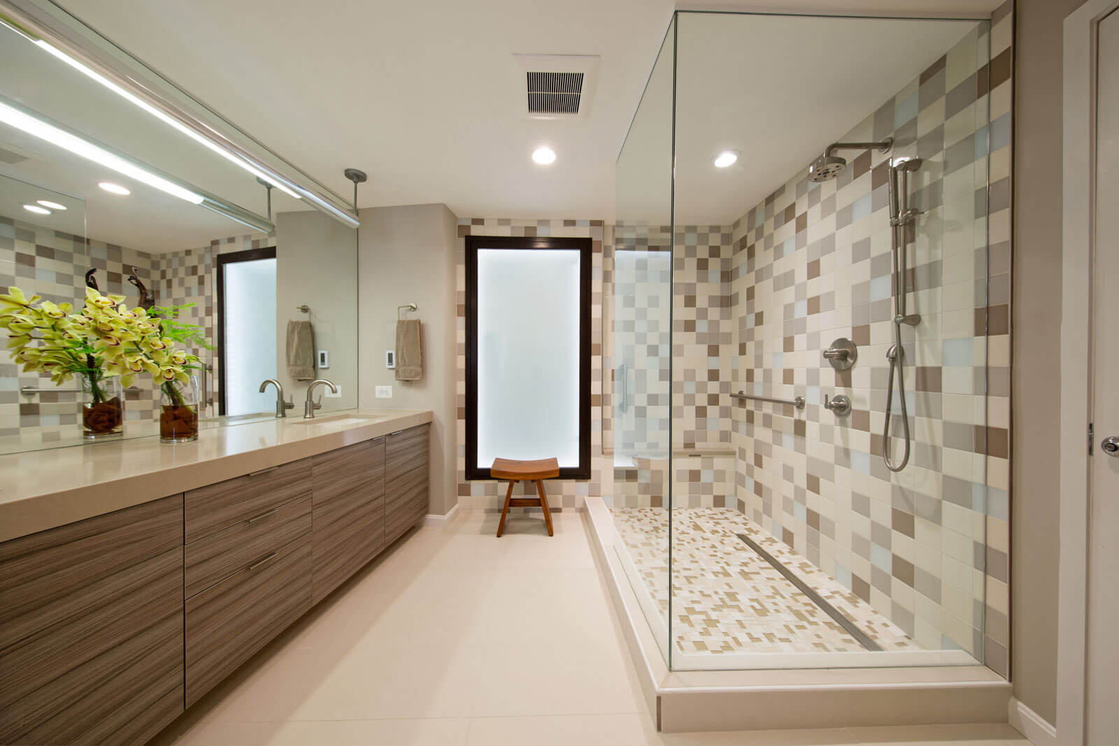 This condominium bathroom renovation perfectly balances style and practicality, turning a compact space into a functional, elegant retreat.