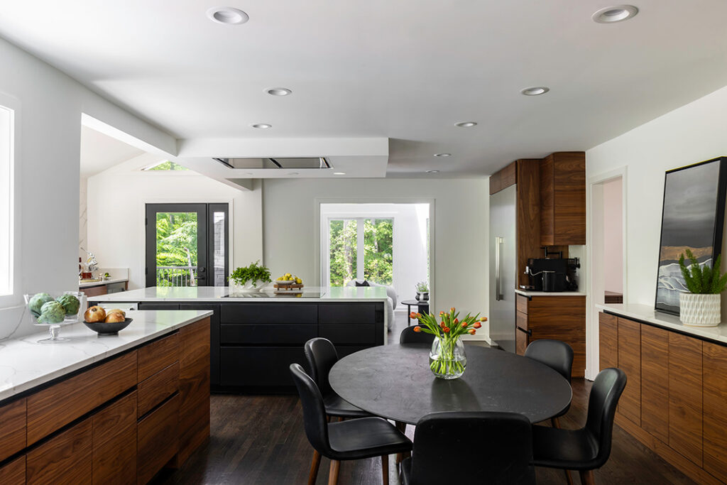 Expansive windows now flood the space with natural light, framing views of the lush backyard and making the kitchen feel like an extension of the landscape. Every detail was designed with purpose — from high-end appliances and hidden storage solutions to a dedicated beverage station that keeps entertaining seamless. The result is a kitchen that blends functionality and luxury, creating a true heart of the home where memories are made daily.