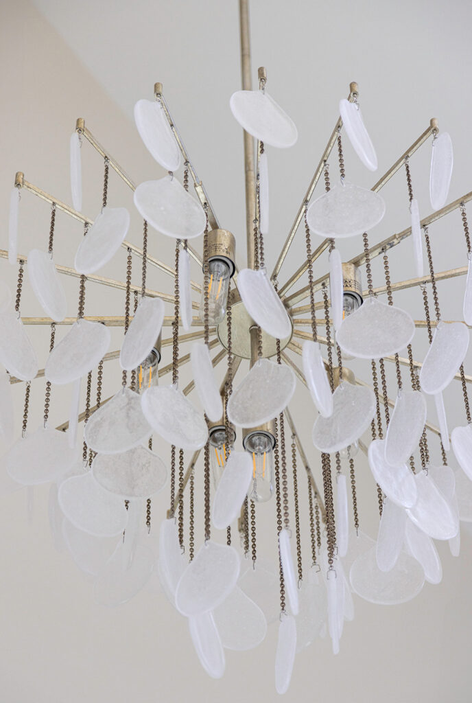 With expansive porcelain wood-look tile, a vaulted ceiling, and a chandelier above the tub, the finished space feels serene, timeless, and perfectly suited to its peaceful riverside setting.