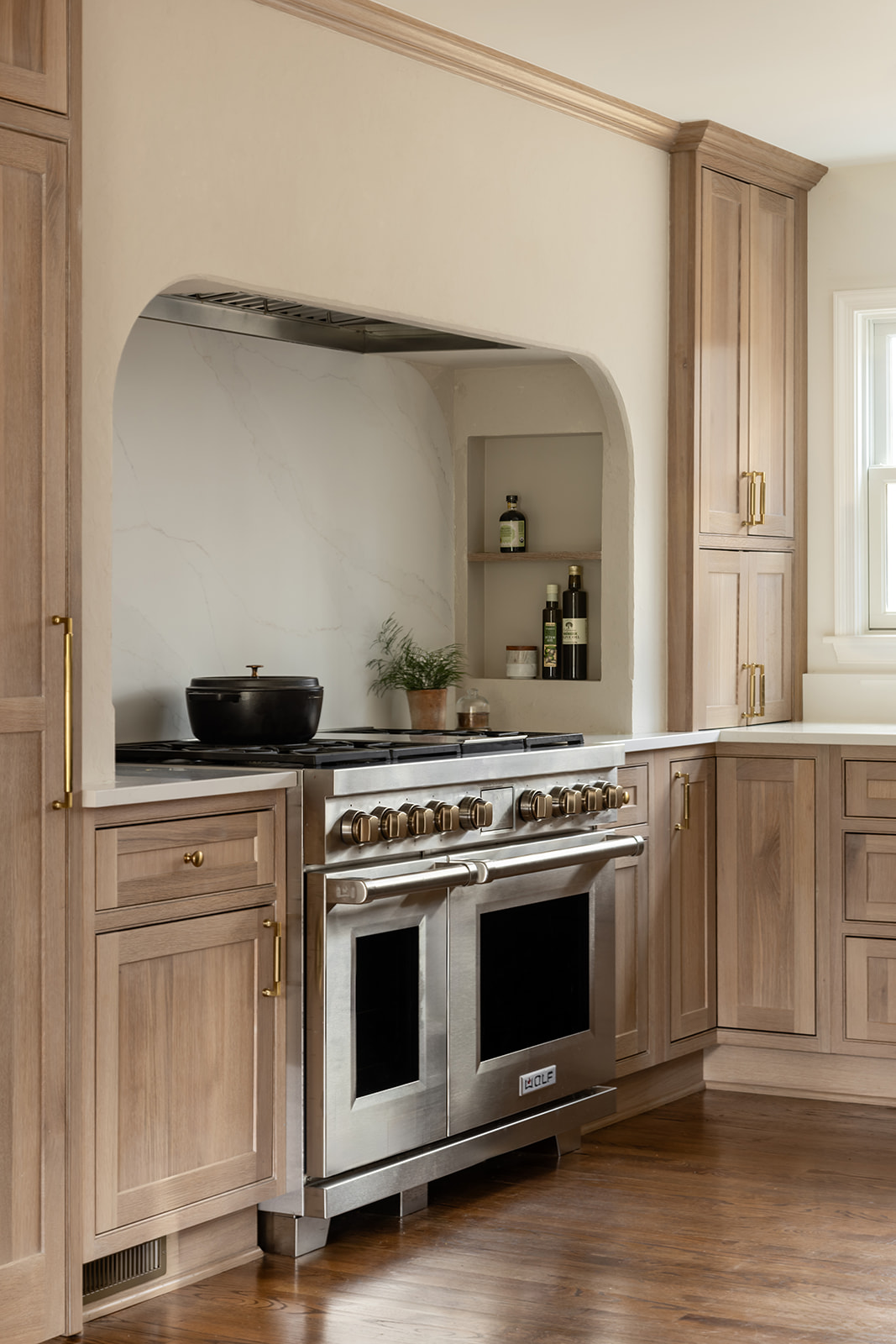 Step into a stunning, clean-lined kitchen with a showstopping arched range and full-height quartz backsplash, then discover a bold, personality-packed powder room that proves small spaces can steal the spotlight. You won’t want to miss this tour!